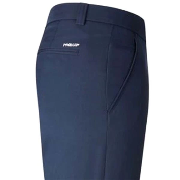 The ProQuip Technical Performance Golf Trousers feature breathable, easy-care fabric and a Durable Water Repellent finish for complete comfort on the course. The Water Repellent finish means that rain will bead off the trousers rather than soaking straight in, so you stay drier for longer if you’re caught in a light shower. There are two front pockets, an inner pocket on the right side for tees etc. and a further two pockets at the back. Stretch fabric allows you to move freely through your game and gripper tape inside the waistband helps keep shirts tucked in place through your swing. ProQuip branding above the front left and back right pockets finishes off the look.