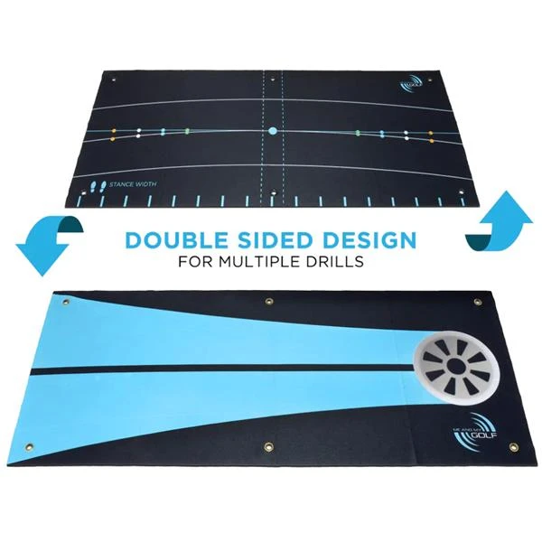 Double sided mimicking a real hole on one side or practice your stroke on the other side.
