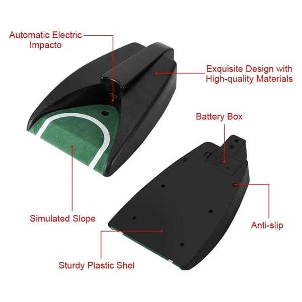 Helps you practice putting at home or the office Automatically returns the golf ball Uses two C batteries Completely portable.